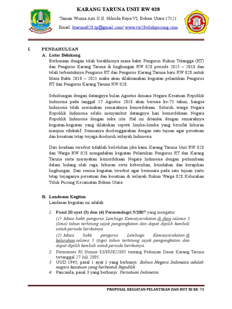 Home contoh proposal contoh proposal 17 agustus 2018 hut ri ke 73 contoh proposal 17 agustus 2018 hut ri ke 73 contoh proposal 17 agustus seperti yang sudah kita semua ketahui pada bulan agustis tepatnya tanggal 17 agustus kita selaku warga negara indonesia senantiasa memperingati dan merayakan hari kemerdekaan bangsa indonesia.