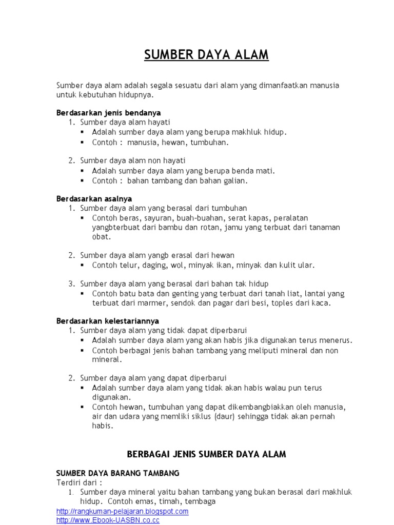 Jenis Jenis Sumber Daya Alam Cijolang Mania