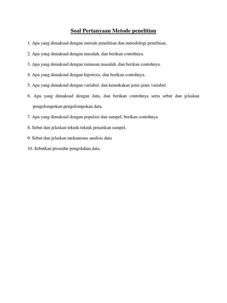 Soal Pertanyaan Metode Penelitian