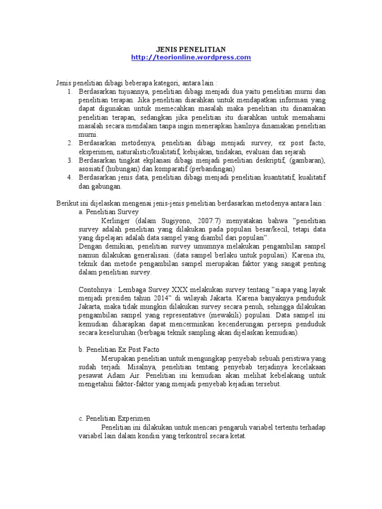 Jenis Jenis Penelitian Beserta Contohnya Isplbwiki Net