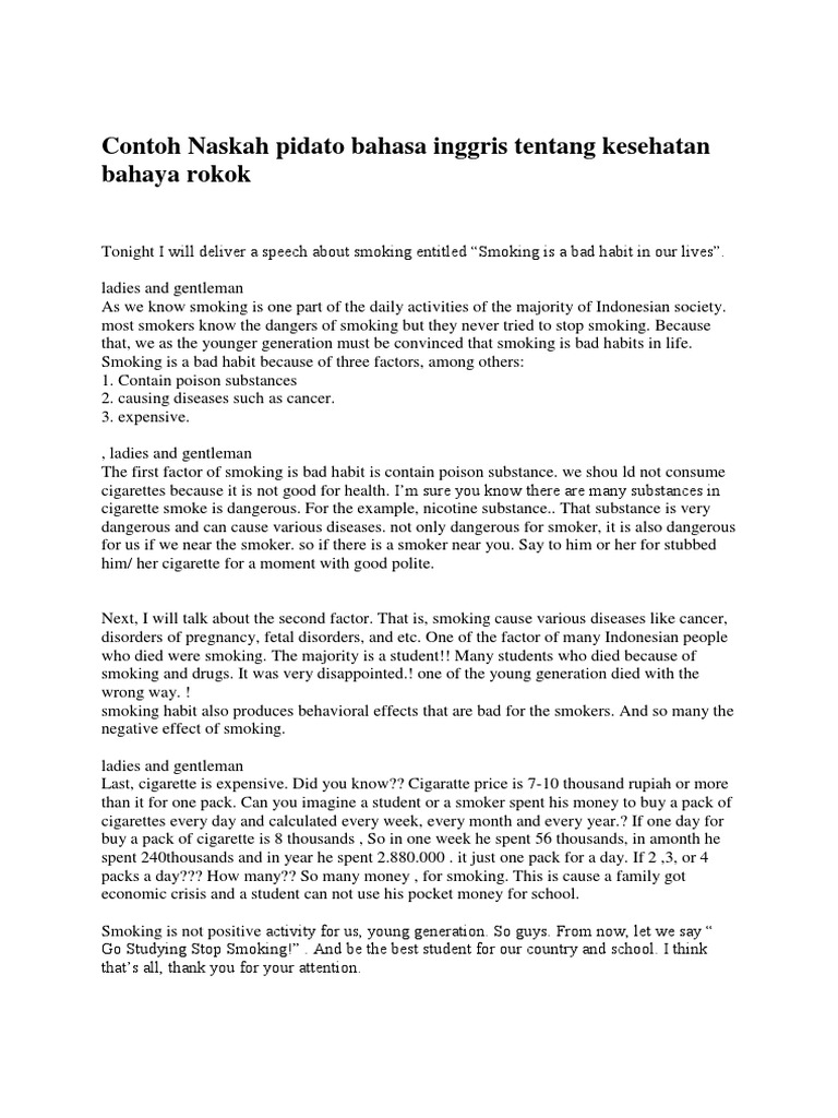 Pidato Bahasa Inggris Bahaya Merokok Untuk Kesehatan The Danger Of