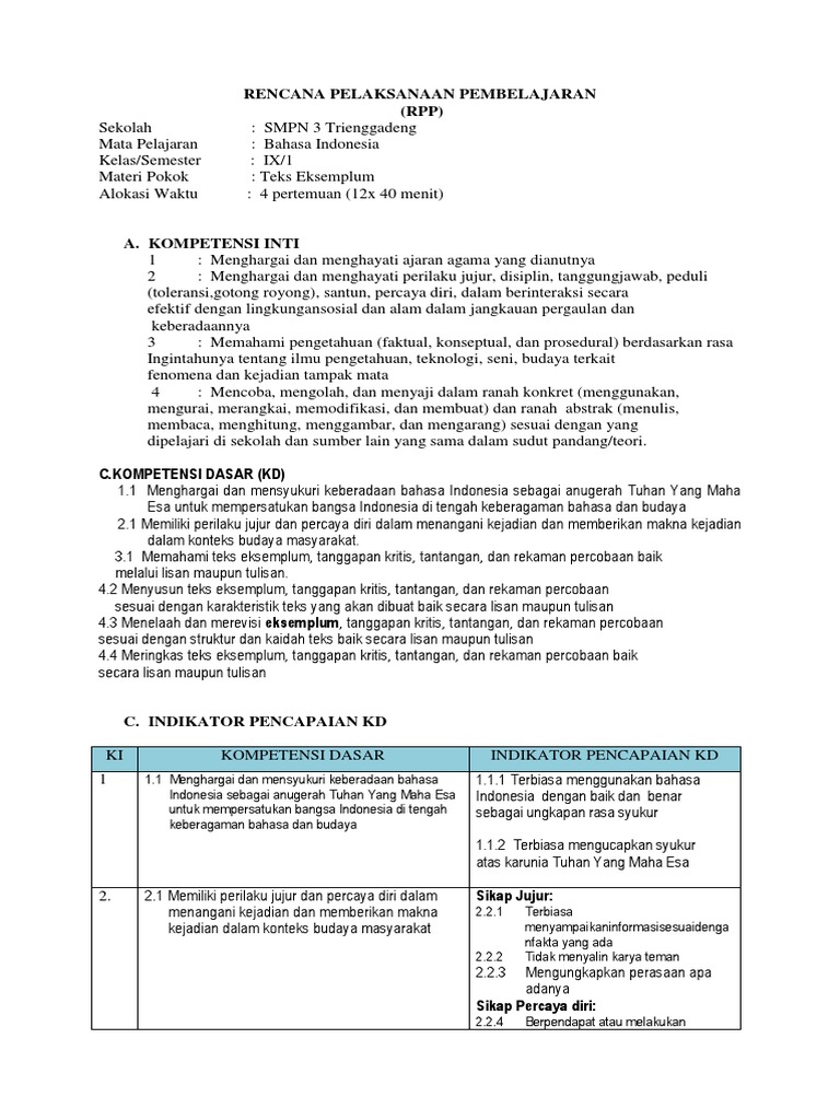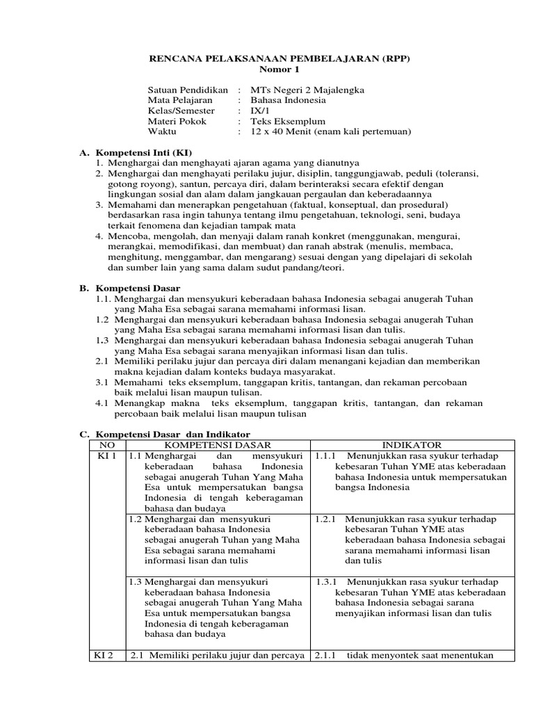 Rpp Smp Bahasa Indonesia Kelas Ix