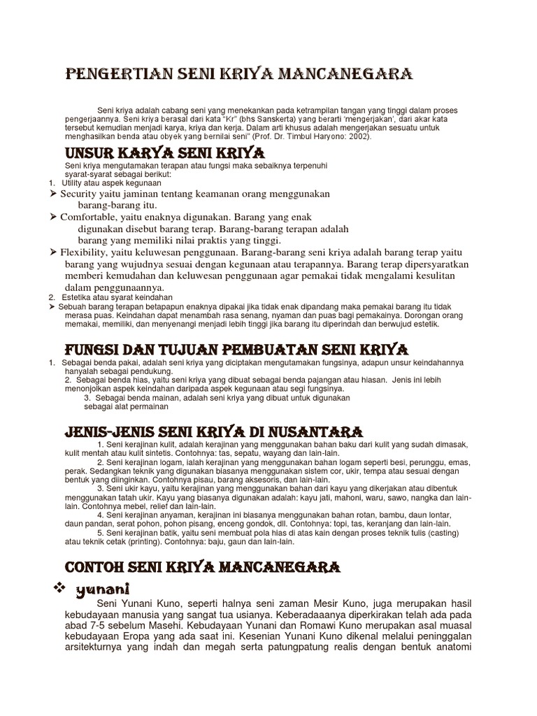 Pengertian seni kriya menurut para ahli fungsi jenis dan contohnya by sumberpengertianco posted on april 3 2017 seni memiliki beberapa macam dan jenis salah satunya adalah seni kriya. Pada dasarnya fungsi seni kriya yaitu seperti berikut. Pengertian seni kriya dan contohnya.