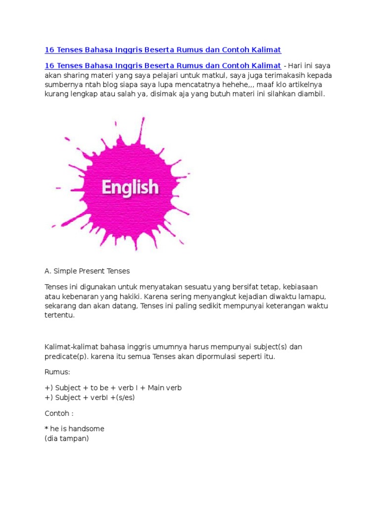 16 Tenses Bahasa Inggris Beserta Rumus Dan Contoh Kalimat