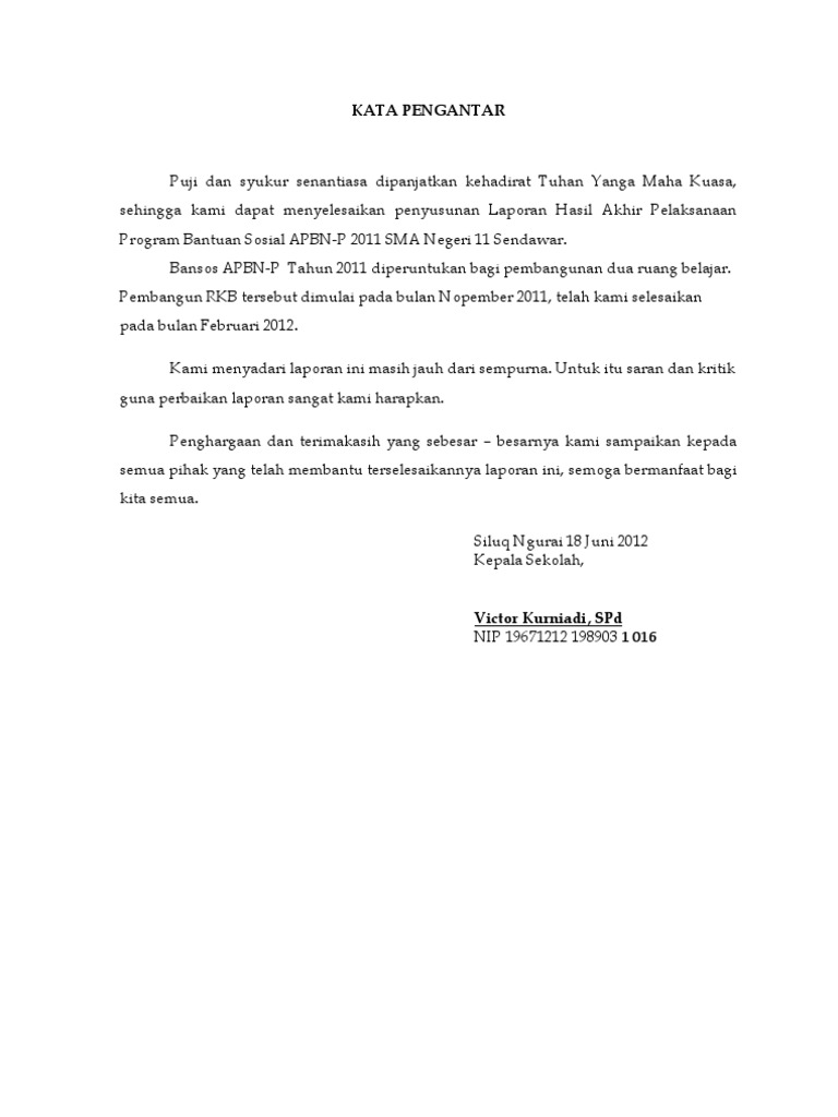 Contoh Kata Pengantar Laporan Akhir