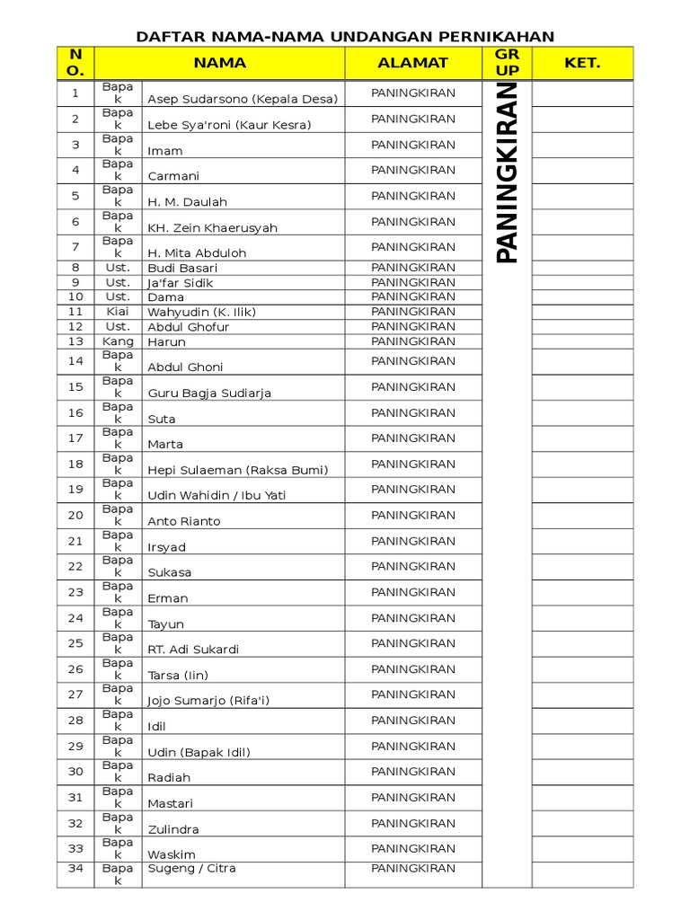 Daftar Nama Undangan Pernikahan Doc