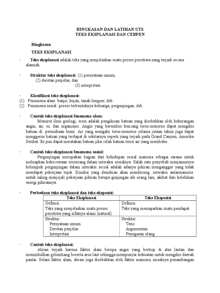Ringkasan Dan Latihan Uts Teks Eksplanasi Doc