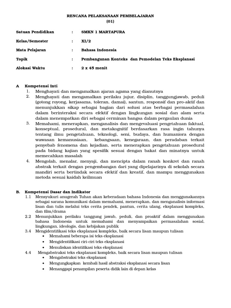 16 Rpp Kd 3 4 Dan 4 4 Teks Eksplanasi Doc