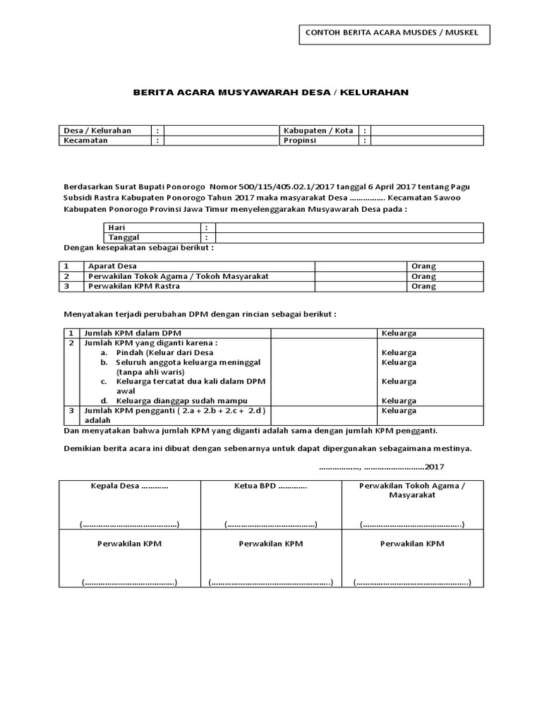 Contoh berita acara musyawarah desa berkaitan dengan pelaksanaan program pembangunan infrastruktur perdesaa n tahun 2013 di desa klampisan kecamatan kandangan kabup. Bagi anda yang saat ini mau melakukan aktivitas di dunia bisnis tidak salahnya jika anda membaca artikel yang akan kami bahas dikesempatan ini. Penyusunan rkp desa melalui musyawarah desa.