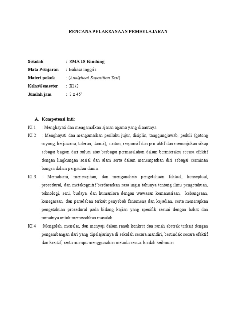 Rpp Analytical Exposition Text Mia Iis Kurikulum 2013