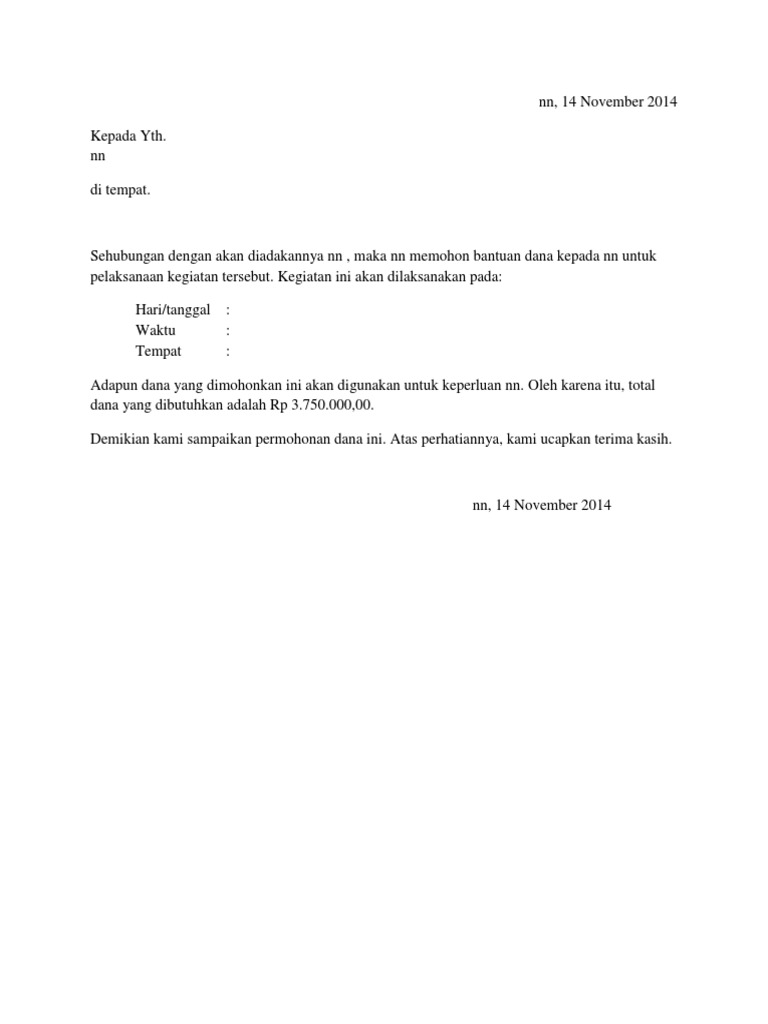 Surat permohonan dana aktivitas surat menyurat dalam lembaga atau organisasi tentunya tidak bisa ditinggalkan. Contoh surat permohonan surat permohonan merupakan surat yang menyatakan permohonan atau permintaan antara satu pihak dan pihak lain. Untuk itu pada kesempatan ini saya akan berbagi tentang contoh surat permohonan bantuan dana.