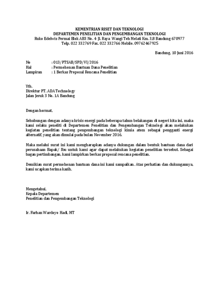 Contoh surat permohonan bantuan dana kita semua pasti tahu kalau surat ada beragam jenisnya. Surat permohonan sendiri dapat bersifat resmi atau pun tidak resmi. Contoh surat permohonan kerjasama merupakan surat yang dipergunakan oleh suatu perusahaan atau instansi dan ditujukan kepada pihak lain untuk memohon kerjasama dalam bentuk tertentu baik itu bentuk penyediaan jasa bentuk penyediaan barang maupun hal hal lainnya.
