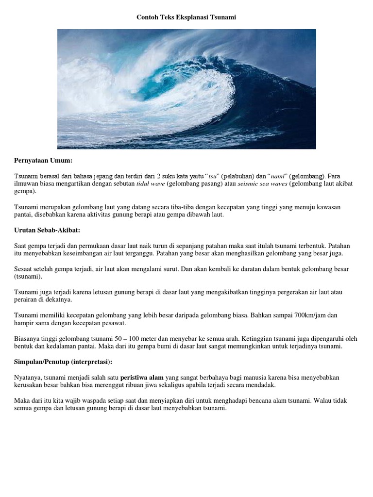 Contoh Teks Eksplanasi Tsunami Banjir Longsor Gempa Bumi