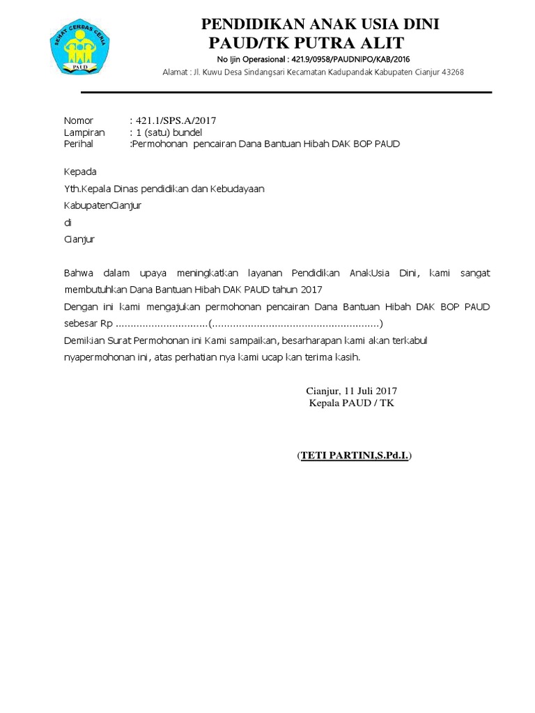 Format Surat Permohonan Pencairan Dana Canre Datanet Co