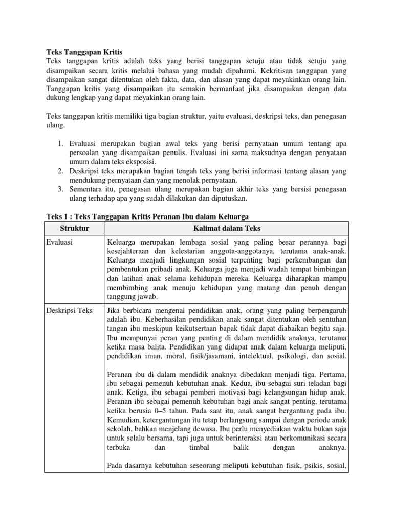 Contoh Teks Tanggapan Kritis Dengan Struktur Kepada Pw 2018