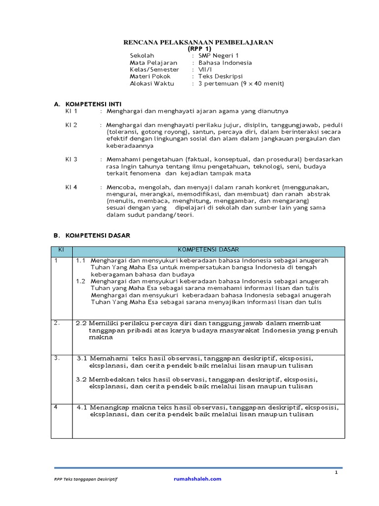 Contoh Rpp Teks Deskripsi Smp Kelas 7
