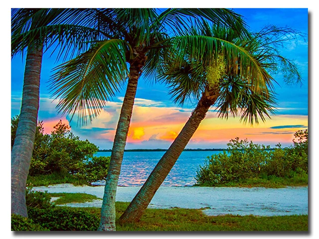 Gambar Dari Rhinestones Pohon Kelapa Persegi Berlian Bordir