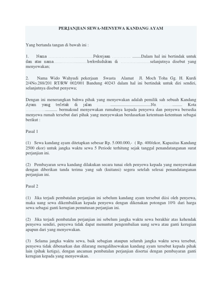 Contoh Perjanjian Sewa Menyewa Rumah Pdf To Doc Pokslover
