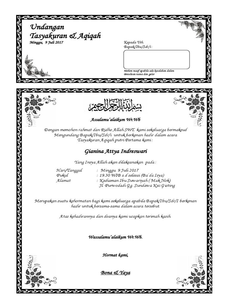 Download Contoh Undangan Aqiqah Dengan Ms Word Terbaru Arif