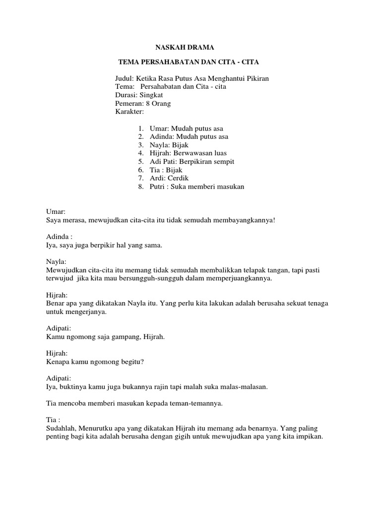 7 Contoh Naskah Drama Pendek Komedi Persahabatan 5 6 7 Orang