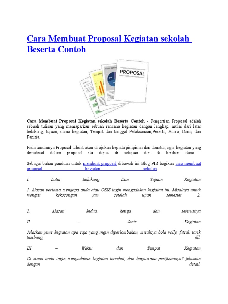 Contoh dan cara membuat proposal kegiatan proposal mungkin tidak asing lagi di telinga kita proposal biasanya di buat karena ada kegiatan atau rencana kali ini kami akan membahas tentang proposal yaitu cara membuat maupun contohnya silahkan disimak.