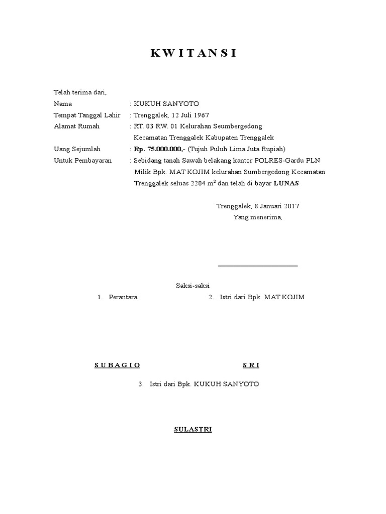 Contoh Kwitansi Pembayaran Jual Beli Tanah Yang Benar Contoh Surat