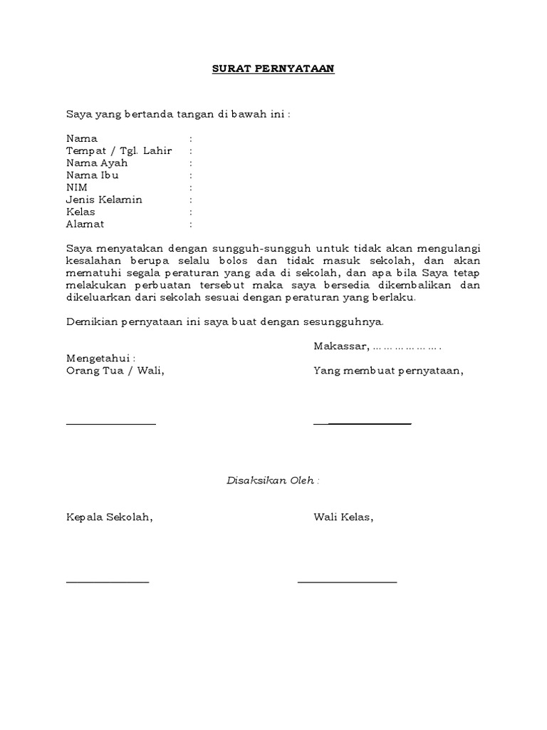 5 Contoh Surat Pernyataan Tidak Melakukan Pelanggaran Siswa File