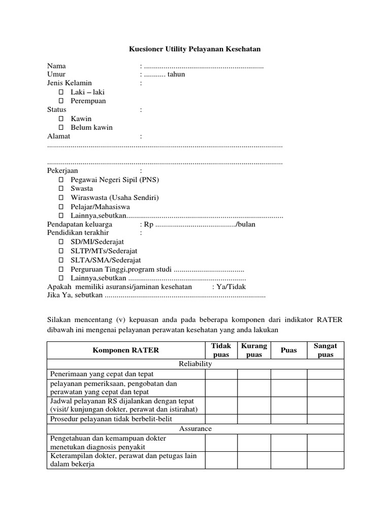 Kuesioner Utility Pelayanan Kesehatan