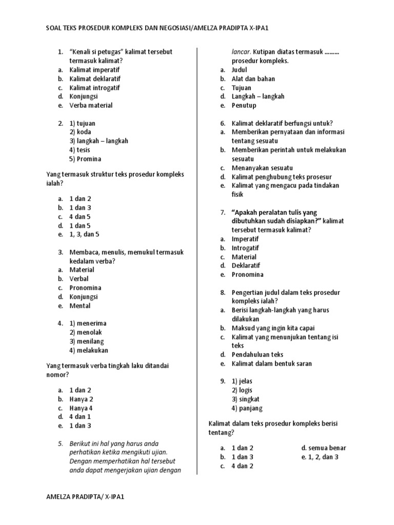 Soal Teks Prosedur Kompleks Dan Negosiasiamelza Pradipta X Ipa1