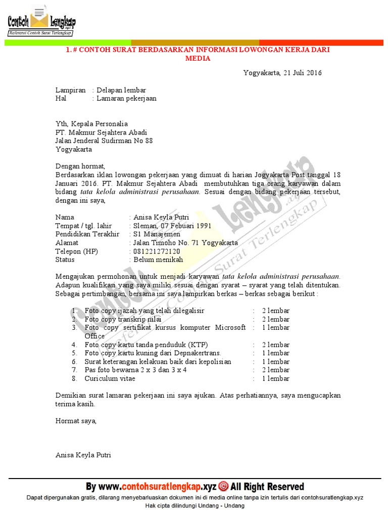 30 Contoh Surat Lamaran Kerja Terbaru Berbagai Pekerjaan Anakui Com