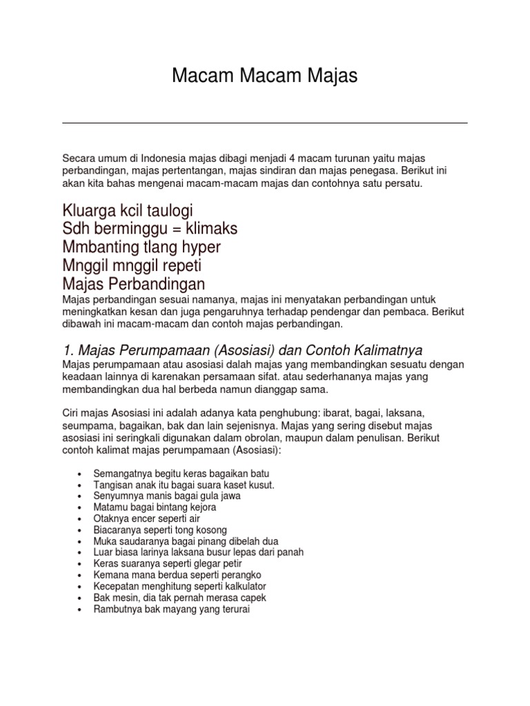 20 Macam Macam Majas Dan Contohnya Lengkap