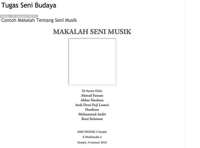 Contoh makalah seni musik. Saya mohon maaf jika terdapat kesalahan dan kekurangan dalam penulisan makalah ini dikarekan keterbatasan waktu. Tampilkan postingan dengan label seni musik. Akhirnya semoga allah berkenan menerima amal bakti yang diabdikan oleh kita semua.