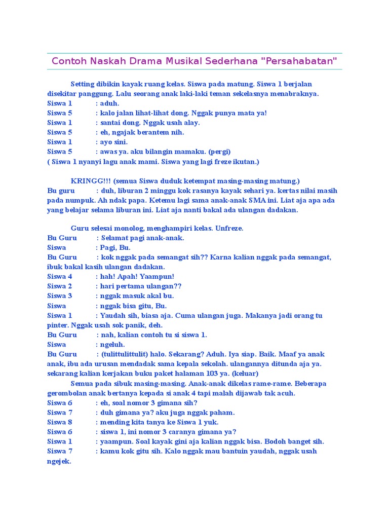 Naskah drama musikal anak sma terimakasih atas kunjungannya. Teks naskah drama sekolah akan menjadi pembahasan kita pada posting artikel pendidikan pada kesempatan kali ini. Izin copas ya untuk referensi saya.