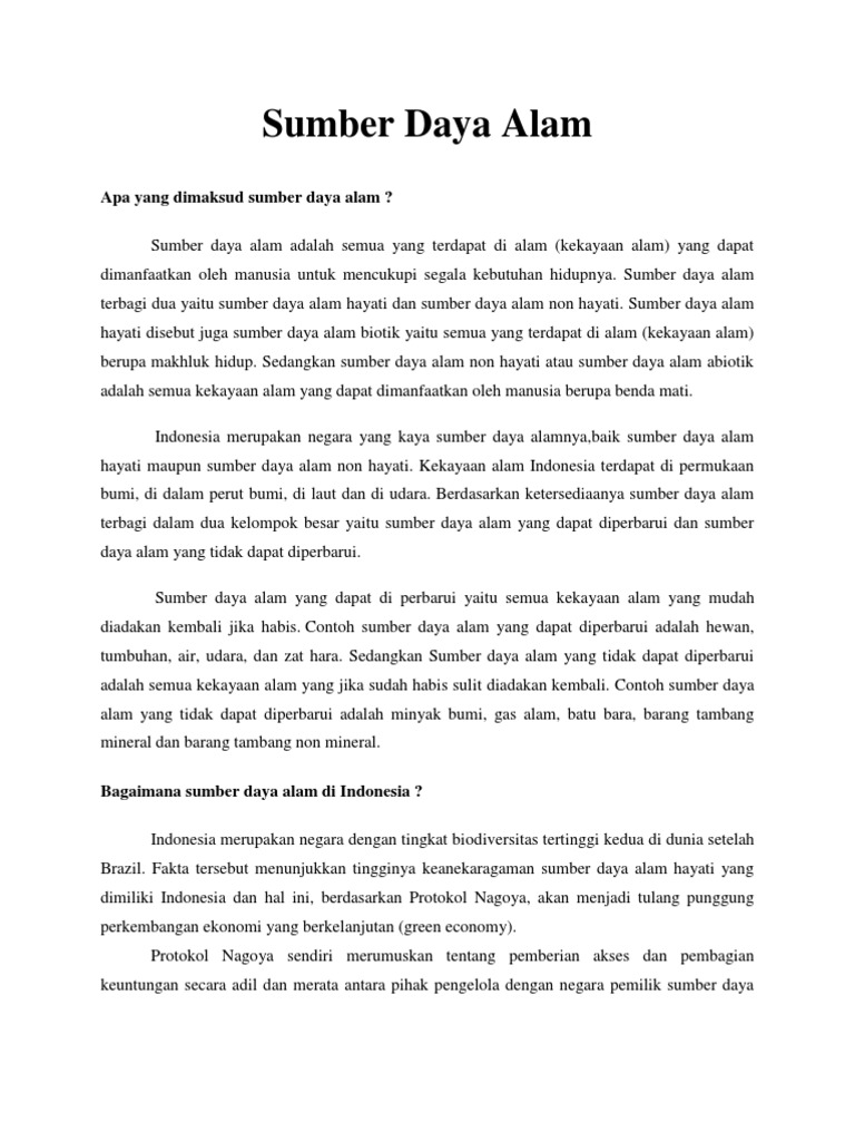 Macam Jenis Dan Contoh Sumber Daya Alam Di Indonesia