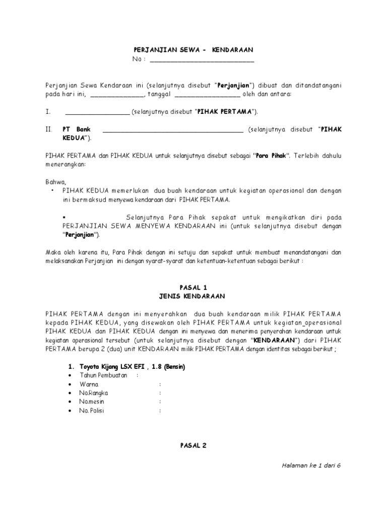 15 Contoh Surat Perjanjian Sewa Mobil Paling Lengkap Contoh Surat