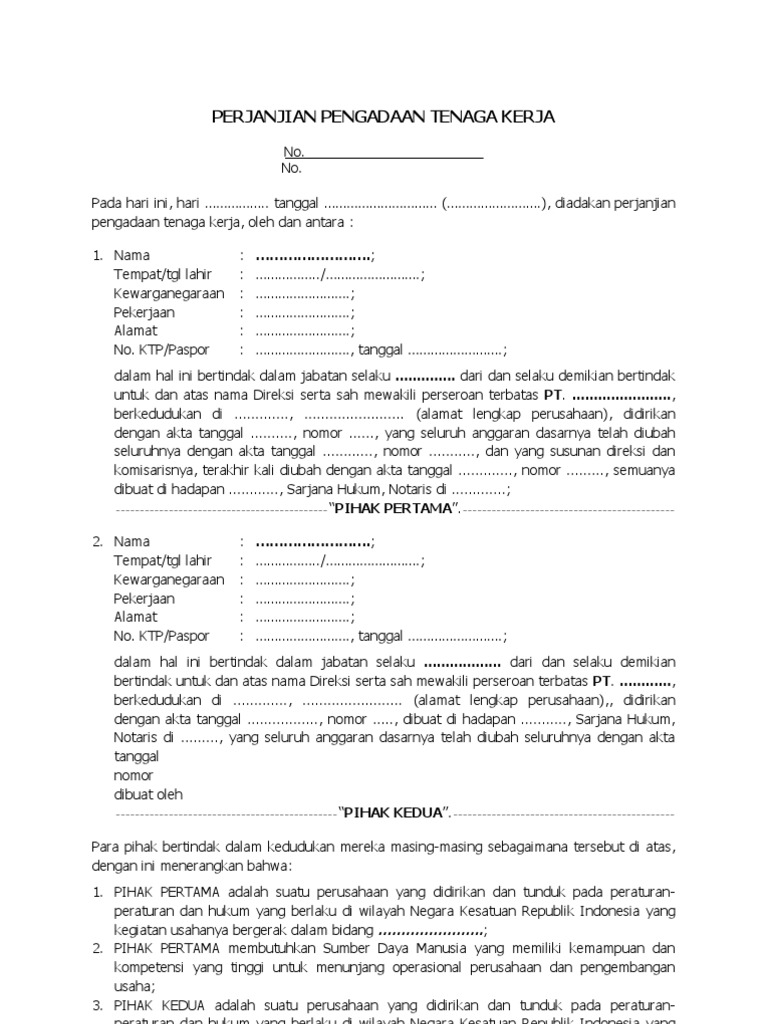 Contoh Perjanjian Kerja Pkwtt Dan Pkwt