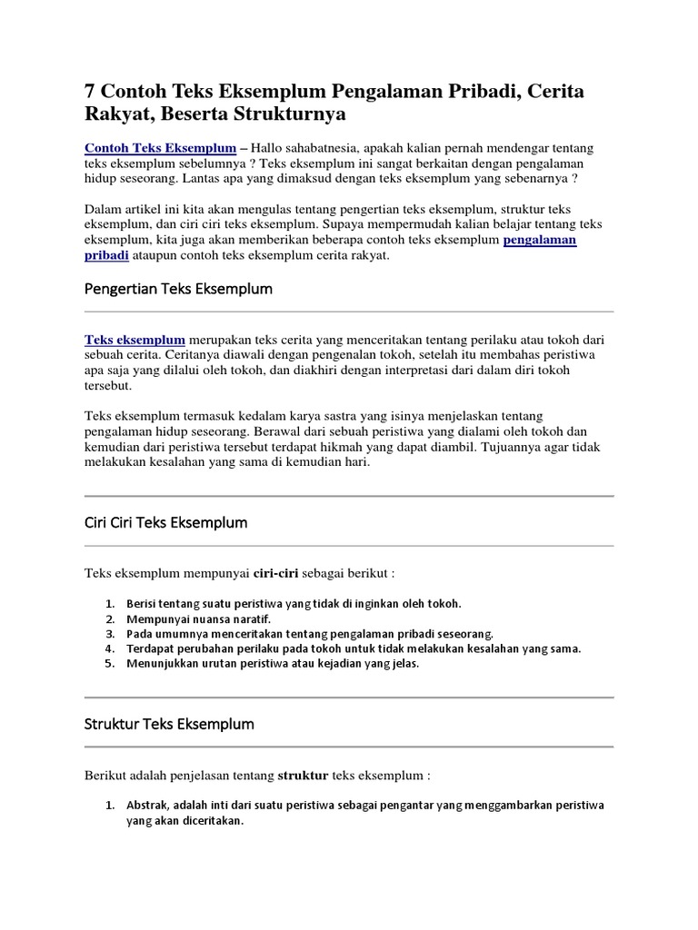 9 Contoh Teks Eksemplum Beserta Struktur Dan Pengertiannya Wiki