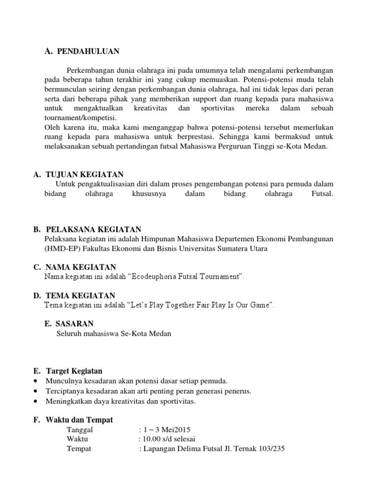 Contoh proposal kegiatan olahraga futsal minggu 08 oktober 2017 karya ilmiah setiap melaksanakan kegiatan misalnya tournament bola voli sepakbola ataupun kegiatan lainnya misalnya pentas seni sekolah tentu kita membutuhkan yang namanya proposal kegiatan. Nah itulah contoh proposal kegiatan yang baik dan benar. Salah satu program yang akan dilaksanakan oleh osis sma negeri 1 bulukumba berkenan dalam hal ini yakni pekan olahraga dan seni porseni.