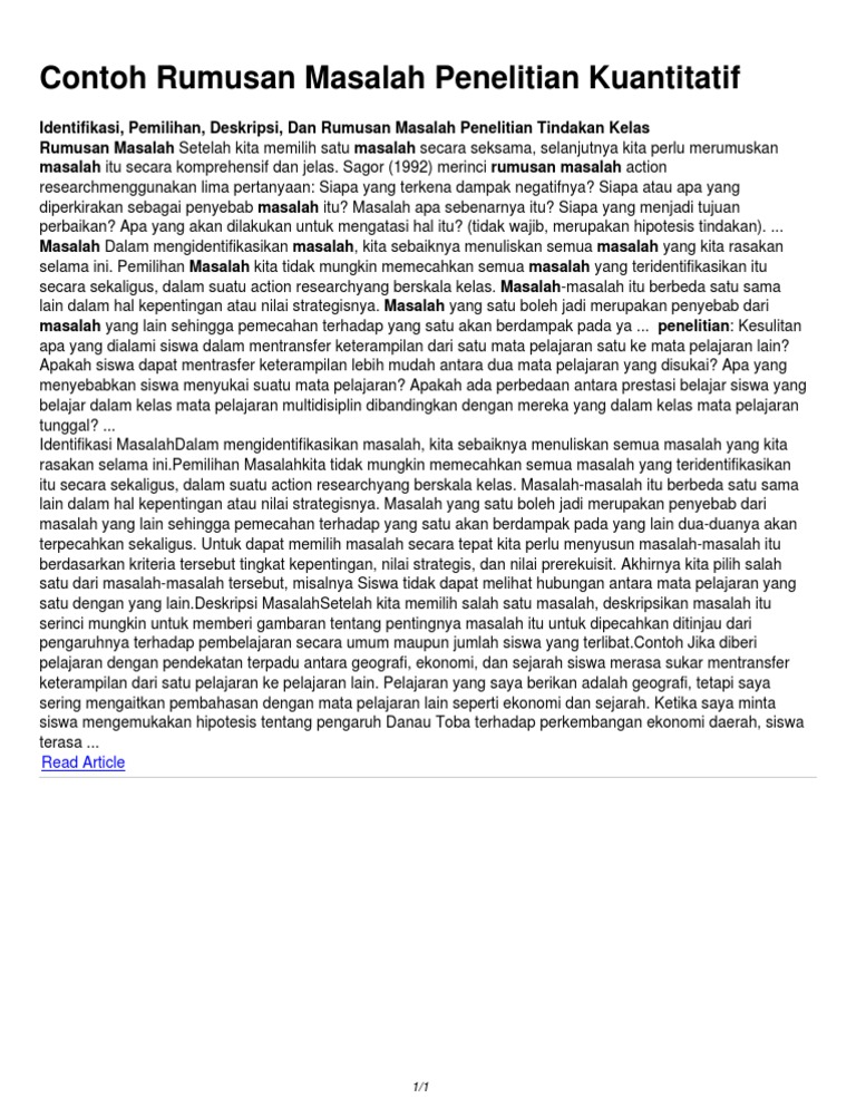 Contoh Rumusan Masalah Kuantitatif Relevan Id