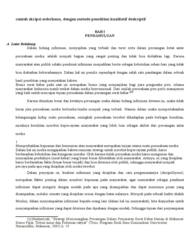 Contoh Skripsi Penelitian Kualitatif Deskriptif