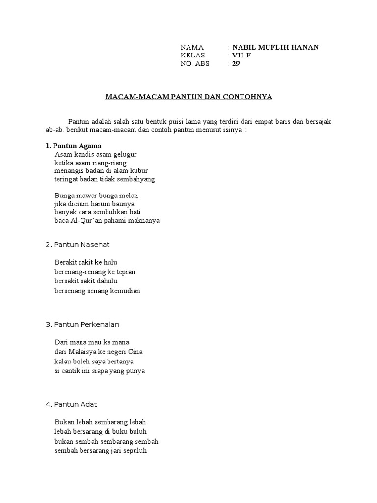 Macam Macam Pantun Dan Contohnya Rendi Permata Academia Edu