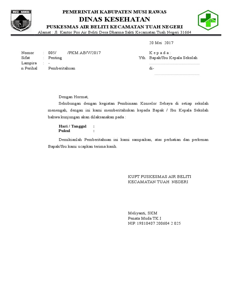 Contoh Surat Pemberitahuan Puskesmas Ke Sekolah