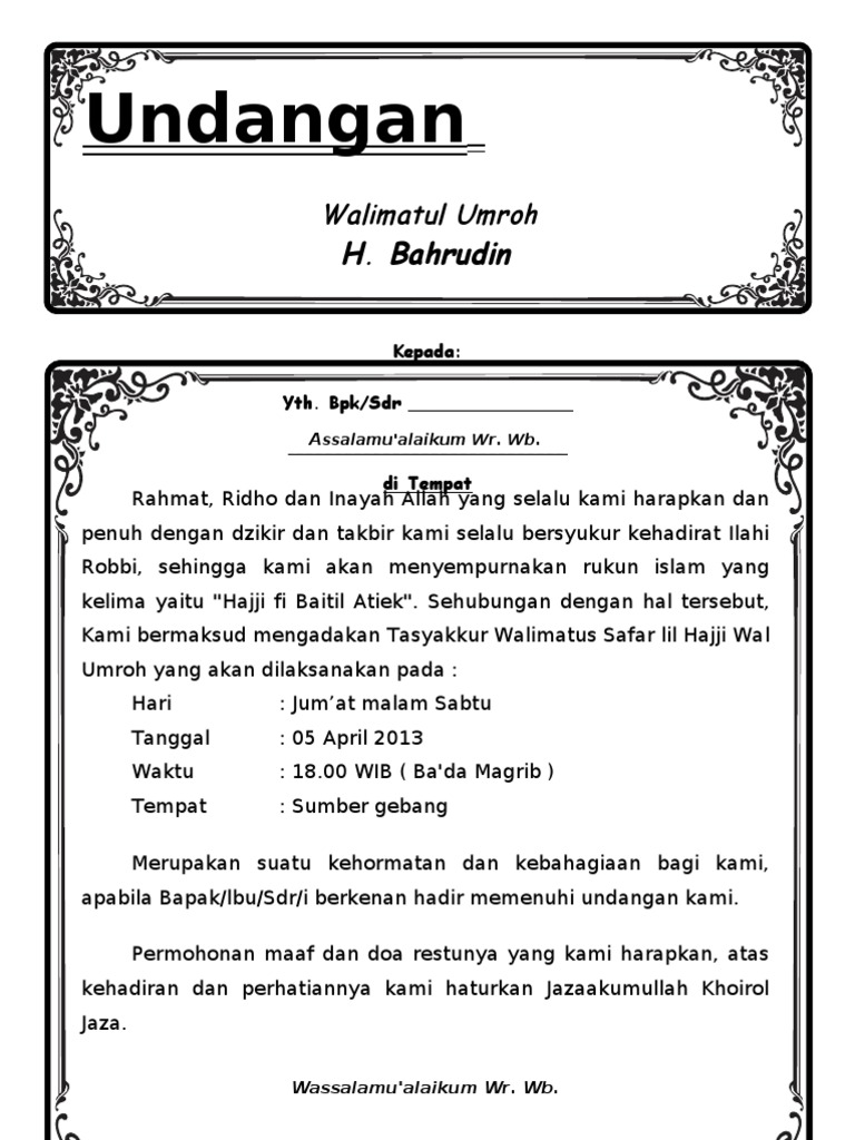 Contoh undangan syukuran pernikahan word. Kami akan berikan panduan membuat undangan syukuran beserta contoh dan download juga dari surat undangan syukuran. Oh iya tidak lupa kami sertakan contoh surat undangan syukuran pernikahan dalam format msword document sudah di format khusus untuk undangan selebaran. Model undangan seri 2b 40 hari iridoc 38.