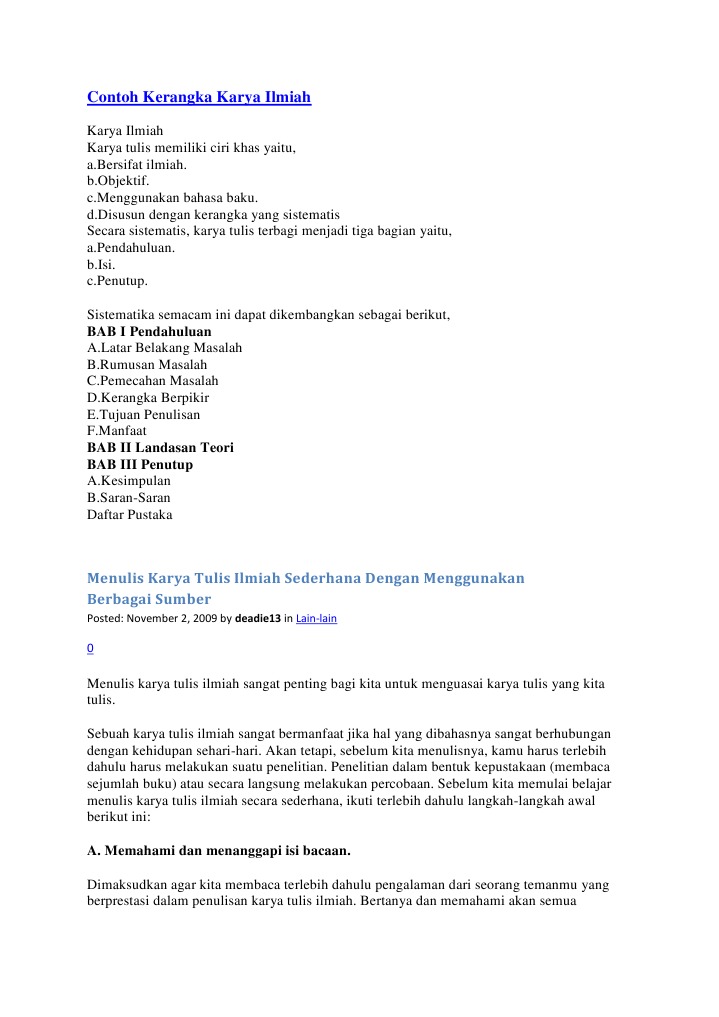 Contoh karya ilmiah sederhana. Saya baru belajar ngeblogdi dalam blog ini berisikan contoh contoh karya ilmiah. Karena hampir semua sekolah dan perguruan tinggi sering memberikan tugas kepada anak didiknya untuk membuat sebuah karya ilmiah.