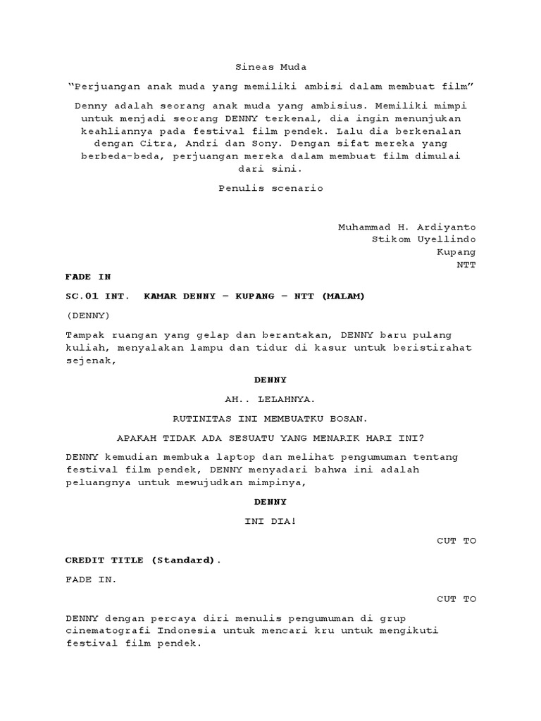 Naskah film pendek masih belajar oleh. Download with google download with facebook or download with email. Contoh skrip film berikut ini merupakan contoh naskah film yang bisa anda jadikan sebagai bahan drefernsi.