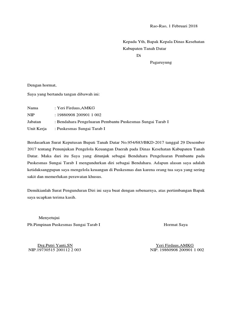 Contoh Surat Pengunduran Diri Dari Bendahara Bos Backup Gambar