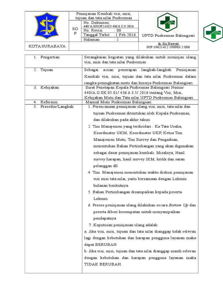 Sop Peninjauan Kembali Visi Misi Tujuan Dan Tata Nilai Docx